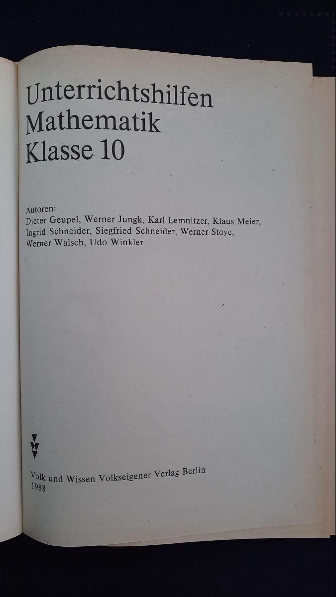 Unterrichtshilfen Mathematik Klasse 10 1988